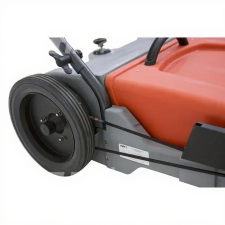 Feiemaskinen har en hovedkostbredde på 785 mm, en total bredde på 785 mm, lengde på 1000 mm og høyde på 400 mm. Den kompakte konstruksjonen og ekstra sidekost på høyre side gjør det enkelt å komme til i hjørner og langs kanter. Den robuste beholderen på 40 liter sørger for rask og hygienisk tømming, samtidig som maskinen er enkel å manøvrere på trange områder.