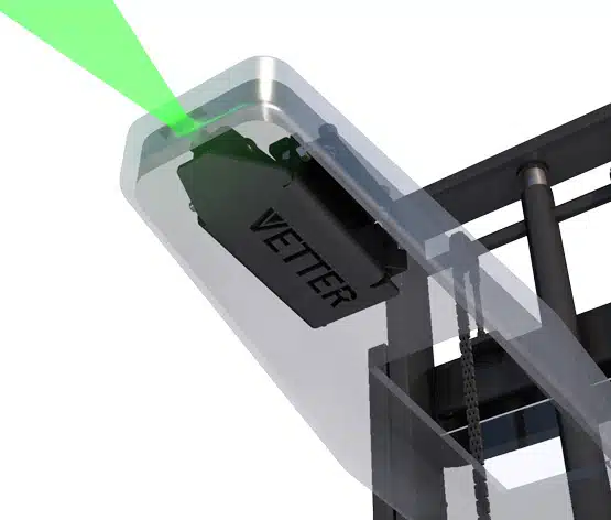 Lasermodulen drives av et kraftig industribatteri som gir lang driftstid. Når batteriet må lades, kan modulen enkelt tas ut, lades og settes tilbake i holderen. Systemet aktiveres automatisk når trucken er i bevegelse.